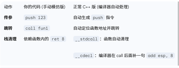 这是 __stdcall 与 C 语言默认约定(__cdecl)最大的区别。